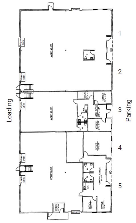 - Drive-In Doors: 10’ W x 12’ H